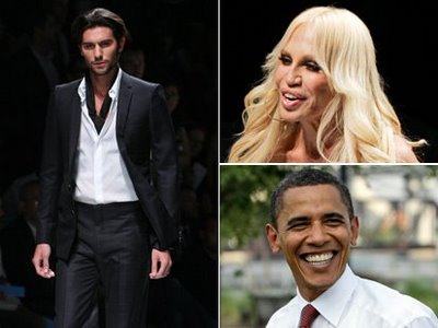 Obama – Versace admin Thursday, June 26, 2008 The Runway As the list of Barack Obama supporters continues to grow another world renowned designer, Donatella Versace has come on board. Versace, who characterizes the presidential hopeful as “a relaxed man who doesn’t need to flex muscles to show he has power”, is dedicating her spring/summer 2009 collection to him. (source) According to an article in The Gaurdian – this must have come as a treacherous blow to Hillary Clinton, seeing as last year Versace was praising Clinton’s “determination, which will hopefully take her to the White House”. But Versace’s love for Clinton never seemed to have very firm foundations. In February 2007 the designer fretted about Clinton’s fondness for trousers: “I understand they are comfortable but she’s a woman and she’s allowed to show that.” (source) YES WE CAN!