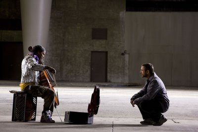 Movie Trailer: ‘The Soloist’ admin Monday, September 15, 2008 5-4-3-2-1, The Script Jamie Foxx will appear alongside Robert Downey Jr. in the new movie The Soloist. Foxx will play the role of Nathaniel Ayers, a homeless but very gifted violinist. Synopsis: A schizophrenic (Jamie Foxx), is a homeless musician from Skid Row, Los Angeles who dreams of playing at the Walt Disney Concert Hall. Through “chance,” he meets a journalist (Robert Downey Jr.), who tries to help this mentally disturbed man get “back on his feet” and make his dreams come true. The Soloist, directed by Joe Wright, is scheduled to play in theaters on November 21, 2008. Check out the trailer below. (Source)
