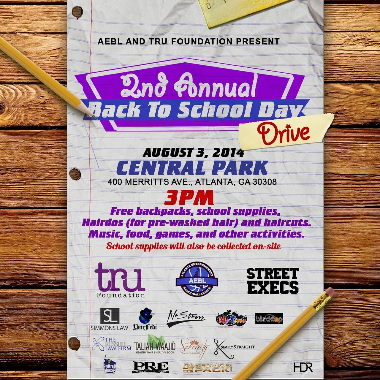 HomeEventsAEBL & 2 Chainz’s T.R.U. Foundation’s ‘2nd Annual Back-to-School Day Drive’ [PHOTOS] admin Tuesday, August 5, 2014 Events, Feature, Game Xclusive, Sports, The Game, The Vault It’s back to school time for many kids and various organizations are “giving back” to a some deserving communities. On Sunday (August 3), the Atlanta Entertainment Basketball League (AEBL) partnered up with 2 Chainz’s T.R.U. Foundation to kick-off the T.R.U. 2 School Fair. The 2nd annual event was held at Central Park, 400 Merritts Avenue NE, Atlanta, GA. Hundreds of families came out to participate in the fair, which included free haircuts/hairstyles, bounce houses, various contests, and meet-n-greets with some of their favorite celebrities and basketball players. Celebrities in attendance were singer/actor Jacob Latimore, YMCMB’s Shanell, Cap 1, and others. Houston Rockets star Dwight Howard also made an appearance with his little one to show his hometown support. Check out a few photos from the event: Cap 1 (@caviardreamz_) poses with fan. Dwight Howard (@dwighthoward) T.R.U. Foundation Sunday marked the beginning of the AEBL’s Playoffs. To stay updated on the latest team stats, check out their video recaps via YouTube/AEBLHoopsTV.