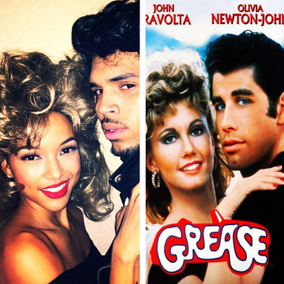 HomeFashion & BeautyTOP 4 CELEBRITY HALLOWEEN COSTUMES [PHOTO RECAP] admin Wednesday, November 5, 2014 Fashion & Beauty, Feature, The Runway Prev3 of 4Next Use your ← → (arrow) keys to browse 2. In the number two spot would be one of the hottest celebrity couples, Chris Brown & Karrueche Tran. They decided to go with a more classic Halloween costume which featured both John Travolta and Olivia Newton John in Grease. Although there are still some fans who disapprove of Brown’s current relationship, Brown and Tran definitely turned heads while showcasing their love for each other with this memorable costume. Prev3 of 4Next Use your ← → (arrow) keys to browse
