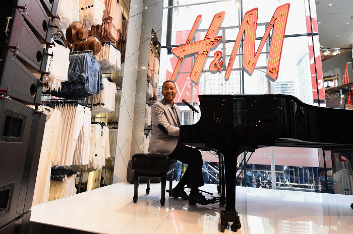 “Only in New York City do we have the largest H&M store in the world,” said John Legend. “I’m so honored to be a part of this special celebration for the brand and my city.” Singer-songwriter, John Legend, served as host of the all-new H&M store (One Herald Square) in New York City. The store is located at the corner of 33rd Street and 6th Avenue. It boasts 63,000 square feet and features a women and men shoe department, H&M Home Collection department, 30 ft. high atrium on the second level, and a 35 ft. modern glass facade with LCD screen with tile details. On opening day, May 20th, over thousands of customers lined up outside. The first 1000 customers received an Access to Fashion Pass (valued up to $1,000) and free giveaways. Customers who brought in old garments were entered into the H&M Garment Collecting program giveaway in hopes of winning gift cards worth $50 to $100. John Legend shared his talents onsite as well. Also, 20 lucky fans got an opportunity to meet and greet the star. H&M, Hennes & Mauritz, was established in Sweden in 1947. Today there are 363 stores in the U.S. and approximately 3,200 stores in 58 markets worldwide. H&M at One Herald Square is the 13th store in Manhattan, employing over 1,400 people. Photo Credit: Getty Images for H&M