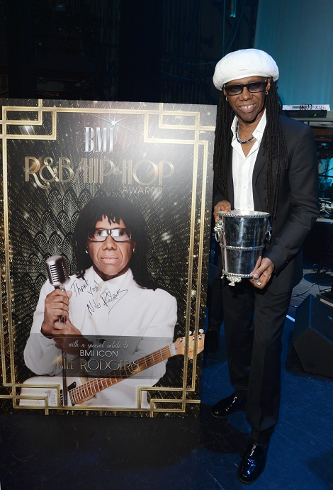 HomeEventsBMI Honors Nile Rodgers at 2015 R&B/Hip-Hop Awards [PHOTOS] admin Monday, August 31, 2015 Events, Feature, Music, The Studio Broadcast Music, Inc.®, (BMI®), the global leader in music rights management, presented the BMI Icon Award to GRAMMY-winning songwriter, composer, producer, arranger and guitarist, Nile Rodgers, at the 2015 BMI R&B/Hip-Hop Awards, held at the Saban Theatre in Beverly Hills on August 28. The star-studded event celebrates the songwriters, producers and publishers of the most-performed R&B/hip-hop songs of the previous year. Rodgers was honored for his unique and indelible influence on generations of music makers and his ability to connect people through song and defy musical expectations. As the 2015 BMI Icon Award recipient, Rodgers joins an elite list of previous honorees that includes The Jacksons, Snoop Dogg, George Clinton, James Brown, Isaac Hayes, Little Richard and Al Green, to name a few. The evening featured a slew of performances: B.o.B opened with a medley of hits, followed by IloveMakonnen who kept the energy going with “Tuesday.” Backed by music director Rickey Minor, as well as band and Donald Lawrence’s vocals, the high-powered Icon tribute was kicked off by R&B chanteuses Kelly Price covering “Upside Down,” Deborah Cox’s delivery of “I’m Coming Out,” Kathy Sledge and the Company offering a rousing rendition of “We Are Family,” and Empire’s V. Bozeman’s vibrant version of “I Want Your Love.” The celebration continued with CeeLo Green’s dynamic performance of “Let’s Dance.” The night concluded with the top honoree taking the stage to perform fan favorites “Good Times” and “Rappers Delight,” with hip-hop legend Chuck D joining Rodgers. Additional top honors presented at the awards ceremony: John Legend “All of Me” earned the Song of the Year prize; DJ Mustard was crowned the Songwriter of the Year for penning hits “2 On,” “Don’t Tell ‘Em,” “I Don’t F**ck With You,” “Main Chick,” “My Hitta,” “Na Na,” “No Mediocre,” “Paranoid,” “Show Me,” and “Who Do You Love?” DJ Mustard also won the coveted Producer of the Year award for the second year in a row, while Universal Music Publishing Group accepted the prestigious Publisher of the Year crystal for having 18 of the most-performed songs from the previous year. BMI also recognized top producers Kanye West, J Cole, Jim Jonsin, Michael “Finatik” Mulé and Isaac De Boni. SoMo won the BMI Social Star Award. Selected by fans voting via Twitter and Instagram, the award salutes the BMI R&B/hip-hop songwriter who has best demonstrated the power of social media to showcase their songwriting talents. BMI President and CEO Mike O’Neill and Vice President, Writer/Publisher Relations, Atlanta, Catherine Brewton shared the evening’s hosting duties with R&B artist and actor Ray J. Guests celebrated and mingled while enjoying Red Bull cocktails during the evening’s festivities. BMI partnered with HD Radio, TW Steel, Provider Inc. and KIND Snacks to present the 2015 BMI R&B/Hip-Hop Awards. For full list of winners, visit BMI online at www.bmi.com. Source: BMI, press release