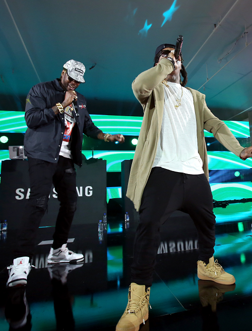 SXSW popped off this past weekend with an explosive performance by rappers Lil Wayne and 2 Chainz. The duo celebrated the release of their latest project, ColleGrove, at the Samsung Galaxy Life Fest. Lil Wayne and 2 Chainz served as headliners of event. The two performed cuts like “Watch Out” from the ColleGrove album, as well as, their solo music. Lil Wayne’s set consisted of fan favorites like “Lollipop,” “Truffle Butter,” and “A Milli.” Other artists that took the stage were Public Enemy’s Chuck D and Flavor Flav, BJ Novak, Abbi Jackson and Ilana Glazer. 2 Chainz Chuck D and Flavor Flav, of Public Enemy Lil Wayne Samsung also launched the new Galaxy S7 and S7 edge mobile devices. At the SXSW event, Lil Wayne hilariously showed how water-resistant the new S7 is by pouring champagne all over it. Here’s one of Samsung’s promo commercials starring Lil Wayne: Photo credit: Samsung/Getty Images