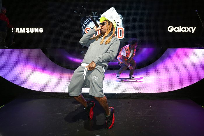 Lil Wayne, despite his recent health scare, surprised fans at the E3 Expo in Los Angeles, CA. The rapper performed at the Samsung booth to help promote his mobile skateboarding game, Sqvad Up. He performed a medley of classics including “Lollipop,” “I’m Going In,” “Truffle Butter,” “A Milli,” and many others. On stage, Lil Wayne substituted backup dancers with six skateboarders. During the E3 Expo, Samsung provided much excitement with their 4D VR Chairs, where users experienced roller coaster assimilations through a Gear VR headset. Check out a few photos from the event: Photo credit: Getty Images/Samsung