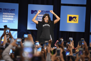 Michelle Obama Encourages H.S. Graduates on College Signing Day admin Wednesday, April 27, 2016 Feature, Lifestyle First lady Michelle Obama took part in College Signing Day activities in Harlem, New York yesterday. Obama, Common, Sway, Tracee Ellis Ross, Melissa McCarthy and several other celebrities encouraged high...